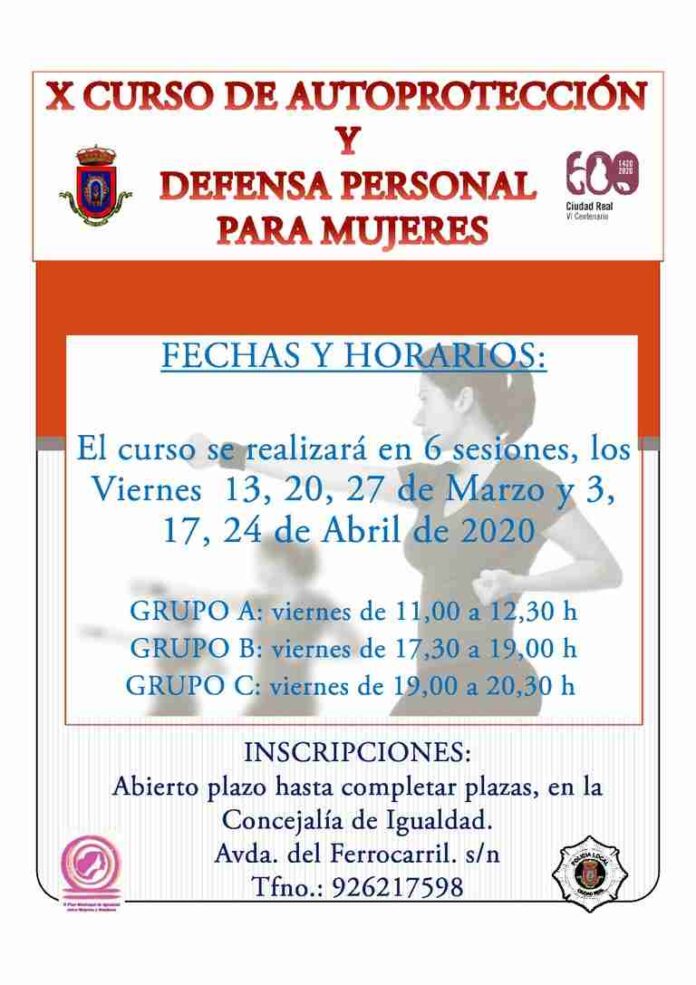 La Concejalía de Igualdad y la Policía Local de Ciudad Real organizan la décima edición del Curso de Autoprotección y Defensa Personal para mujeres. Este curso se realizará en 6 sesiones los viernes desde el 13 de marzo hasta el 24 de abril.