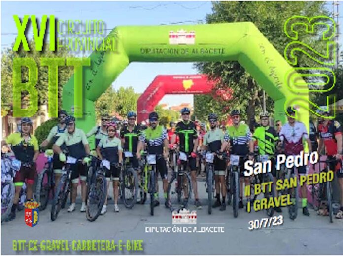 La II BTT San Pedro I Gravel tendrá lugar en el municipio de San Pedro en Albacete el próximo 30 de julio a las 09:00 horas. El precio de inscritos: 15,00 € y precio no inscritos: 17,00 €. Máximo participantes: 500. Edad mínima: 18 años. Distancia: 44,5 km. Recogida dorsales: De 8:00 a 09:15h. Piscina municipal. Lugar de salida: Paseo de la Libertad. Avituallamientos: km10(Liquido), km27 (Liquido y solido), km34(Liquido) y km44. Precio Ludoteca: 0,00 €. Lugar de meta: Paseo de la Libertad. Cierre de meta: 13:00. Entrega de trofeos: Piscina municipal.