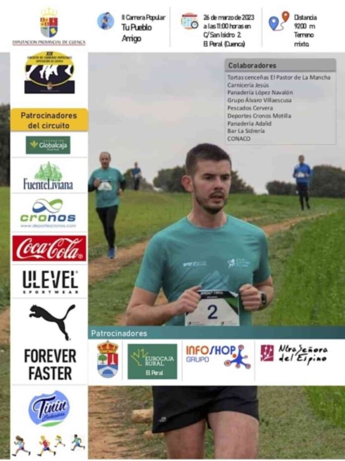 II Carrera Popular “Tu pueblo amigo” el próximo 26 de marzo a las 11 horas en c/ San Isidro 2 El Peral (Cuenca). Una carrera del XIX Circuito de Carreras Populares Diputación de Cuenca. Organiza el Club de Atletismo El Peral.