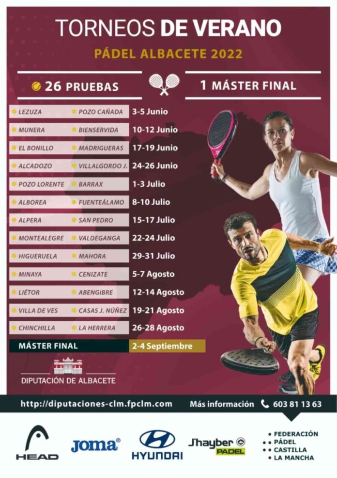 Los torneos se desarrollarán durante los meses de junio, julio y agosto, comenzando del 3 al 5 de junio los primeros (en Lezuza y Pozo Cañada) y celebrando, además, un Master Final que se disputará entre los días 2 y 4 de septiembre para conocer a las ‘mejores raquetas’ de esta iniciativa a nivel provincial.