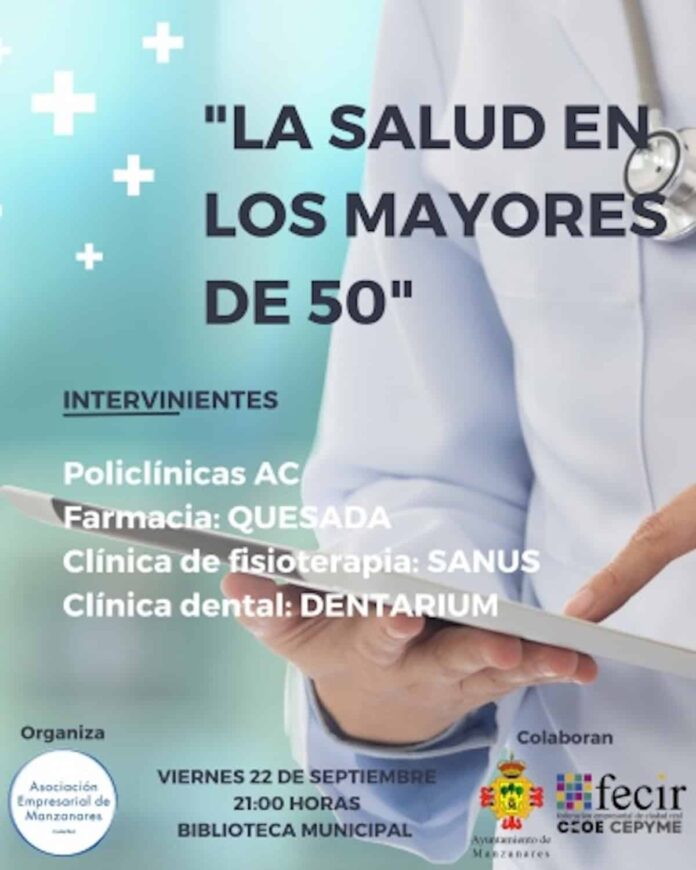 Este viernes 22 de septiembre tendrá lugar la II Jornada de la Salud ‘La salud en mayores de 50’ organizada por la Asociación Empresarial de Manzanares (Ciudad Real) a las 21:00 horas en la biblioteca municipal ‘Lope de Vega’ de la localidad. Este evento es una oportunidad para explorar y comprender los desafíos y cuidados de la salud que afectan a quienes han sobrepasado esta edad.