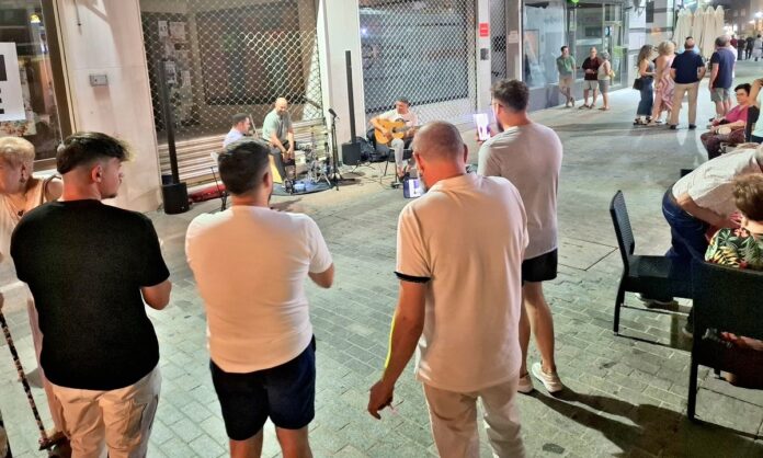 El viernes pasado, Imanol García, virtuoso del violín, junto a Jaime Nadal en la percusión y Mariano Valdayo en la guitarra flamenca, hicieron vibrar a los presentes con interpretaciones que mezclaron la esencia del flamenco con otros estilos, creando un ambiente festivo y acogedor. El público, que abarrotó las terrazas del centro de la ciudad, respondió con calurosos aplausos, disfrutando de una actuación que no solo animó la noche, sino que también celebró la cultura local.