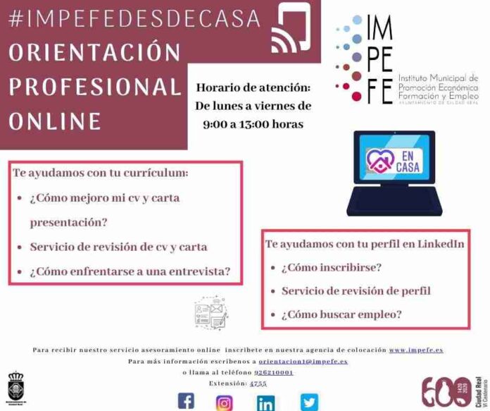 El Instituto Municipal de Promoción Económica, Formación y Empleo (IMPEFE) ha puesto en marcha una iniciativa bajo el nombre de #IMPEFEdesdeCasa para acercarse a las personas que se encuentran en situación de búsqueda de empleo, a través del Servicio de Orientación Laboral.