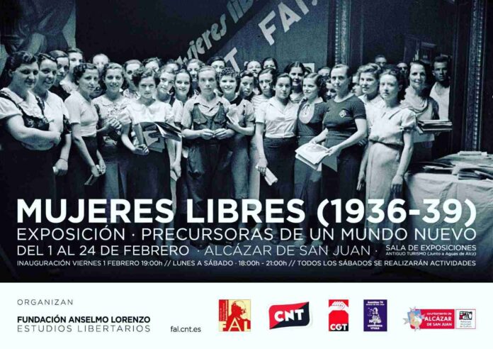 Este viernes a partir de las 19 h. en la antigua casa de Turismo (junto al edificio de las Aguas) en Alcázar tendrá lugar la inauguración de la exposición Mujeres Libres, que llega a nuestra localidad de la mano de CNT Ciudad Real, CGT Alcázar y Asamblea Feminista 7N Alcázar.