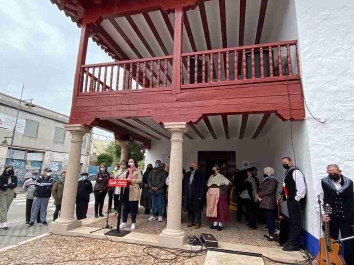 La alcaldesa Rosa Melchor y el presidente de la Asociación Coros y Danzas, Jesús Guzmán descubrieron la placa conmemorativa cubierta con el tradicional pañuelo de hierbas. Un acto que contó con la asistencia de la delegada de la Junta en la provincia de Ciudad Real, Carmen Olmedo.
