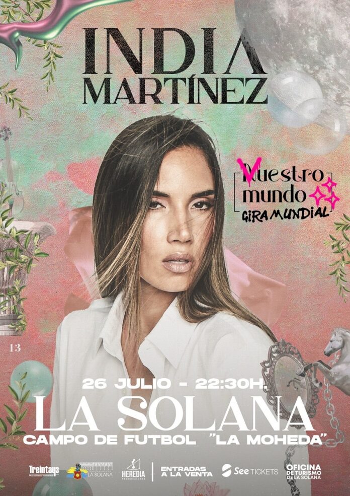 El próximo 26 de julio, el Campo de Fútbol ‘La Moheda’ de La Solana se vestirá de gala para recibir a la destacada artista cordobesa, India Martínez. En el marco de su gira mundial ‘Vuestro Mundo’, este evento será el único concierto que la cantante ofrecerá en la provincia de Ciudad Real este verano, coincidiendo con la celebración de la feria y fiestas de Santiago y Santa Ana en el municipio.