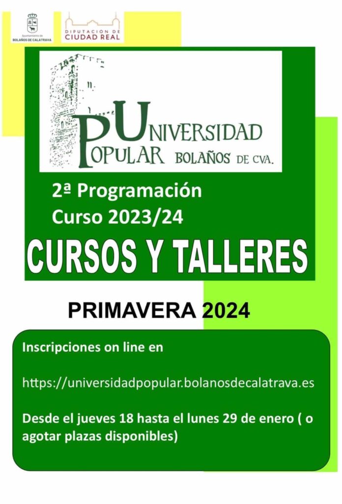 Para más información sobre las inscripciones, pueden acceder al artículo «Iniciación de Inscripciones: Universidad Popular de Bolaños Lanza 20 Talleres este Jueves» publicado en el Diario de Castilla-la Mancha.