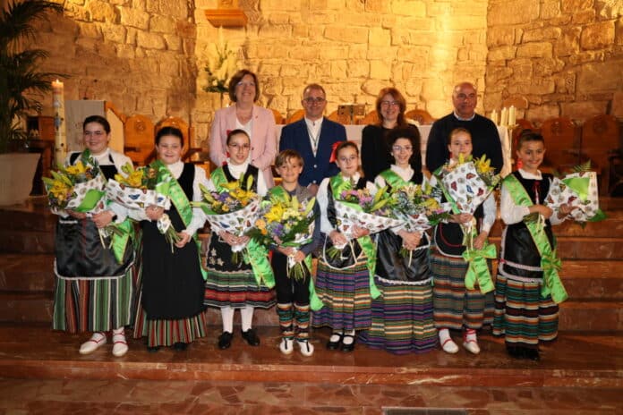 En la emotiva ceremonia, siete damas y un caballero —Iris Alambra, Rocío Vargas, Alicia Domínguez, Triana Sánchez Mateos, Paz Villacañas, Leire Moreno, Celia Moraleda y Saúl Alambra— recibieron de manos de sus familiares las bandas y ramos distintivos. Estos jóvenes tendrán el honor de acompañar la imagen de San Isidro en las diversas actividades programadas, destacando la tradicional subida al cerro el día 15 de mayo.