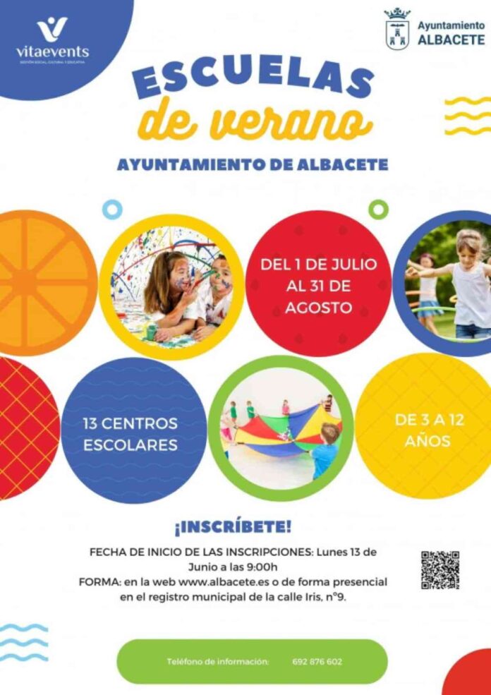El lunes 13 de junio a las 9 horas, inician las inscripciones para niños entre 3 y 12 años en las Escuelas de Verano del ayuntamiento de Albacete. Las mismas se realizarán en dos modalidades, por vía telemática a través este enlace: https://www.vitaeventsformacion.es/vitaevents/vitaevents/inscripciones_71_1_ap.html. O por vía presencial en la Oficina de Atención a la Ciudadanía, situada en la Calle Iris, nº9.