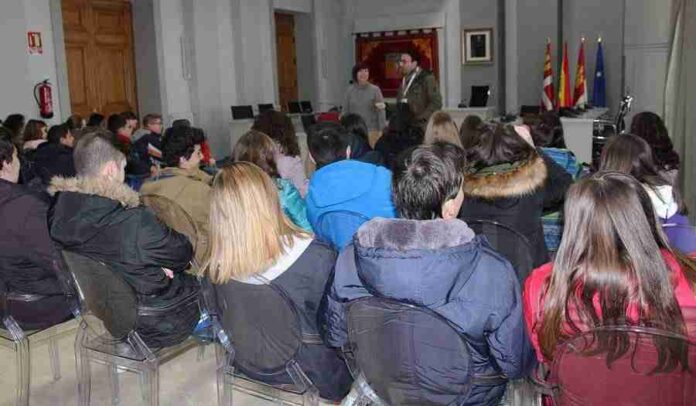 La historia del edificio, que nació como casino ligado a la masonería, y su evolución hasta convertirse en Ayuntamiento; así como la distribución de sus dependencias y la labor política y administrativa diaria que se realiza dentro de él fueron el hilo conductor de la visita -guiada por técnicos de la Oficina de Turismo- de la que pudo disfrutar el alumnado de 1º y 4º de ESO del Instituto Juan Bosco.