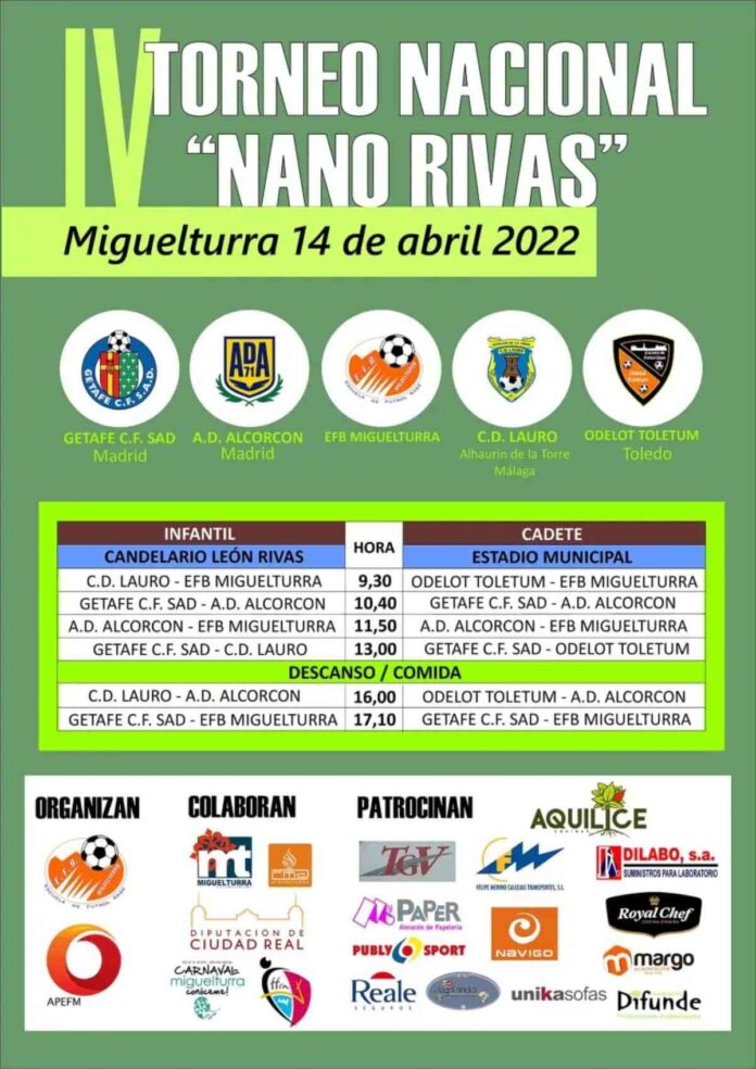 Toda la información a través del siguiente enlace: https://www.miguelturra.es/miguelturra-celebrara-cuarta-edicion-torneo-nacional-futbol-nano-rivas-14-abril