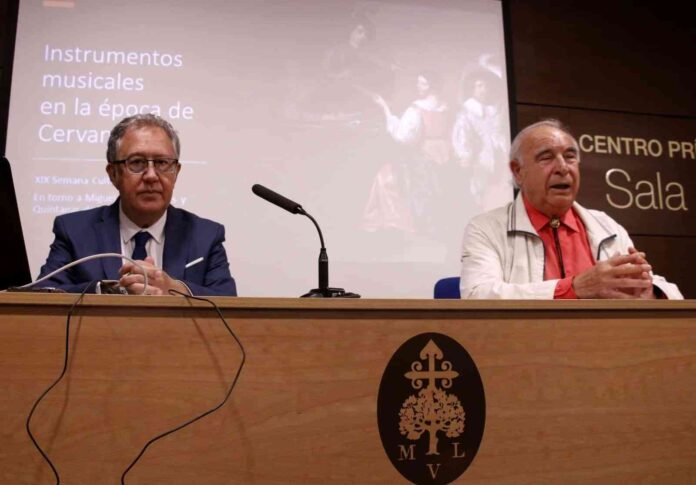 La tercera de las conferencias de esta Semana Cultura, se celebraba la noche del jueves a cargo de Jesús Muelas Sierra bajo el título de “Los instrumentos musicales en la época de Cervantes”.