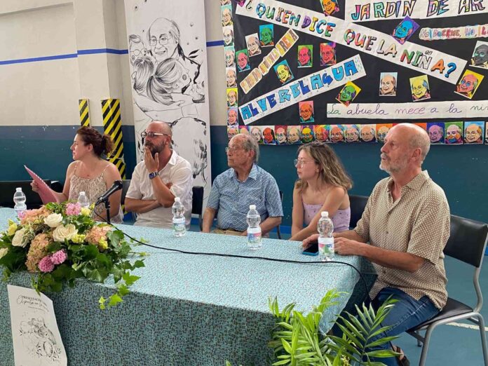 Juan Garrido afirmaba que es una suerte de poder contar con “El poeta en la escuela” para presentar el libro que es una selección de 29 poemas suyos que son aptos para trabajar en la escuela, en los institutos. Es una oportunidad, decía, para trabajar y para poder guardar este patrimonio que nos ha dejado el poeta y tenerlo a mano, “tenerlo en este librito precioso que cuenta con unas ilustraciones de Isabel Corrales, que es estudiante de ilustración. Esperamos que el libro sirva para que llegue a todos los colegios y centro educativos para que cuando alguien eche mano de un poeta, saber y recordar que tenemos un poeta de primera categoría, que es José Corredor Matheos”. Para que lo tengamos cerca. Corredor Matheos, añadía, tiene la suerte de tener un colegio, que es este, que es suyo El Jardín de Arena, y nosotros tenemos la suerte de tener a Pepe, El poeta en la Escuela.