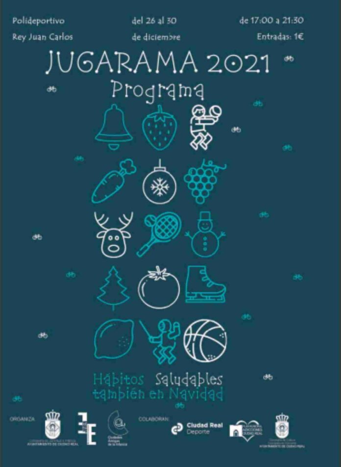 Jugarama permitirá el disfrute de una variedad de actividades, bajo el lema “Hábitos saludables también en Navidad”. Organiza el ayuntamiento de Ciudad Real, Espacio Joven, Ciudades Amigas de la Infancia. Así como Ciudad Real Deporte, Plan Municipal de Adicciones y las concejalías de Cultura e Infancia.