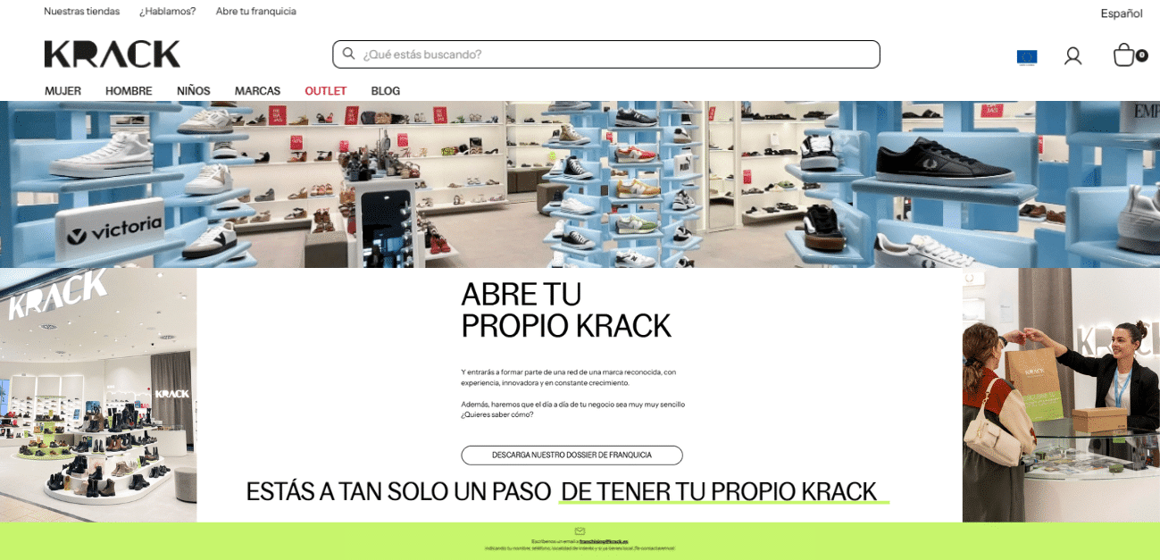Krack, la reconocida marca de calzado en España, ha lanzado una nueva fase de expansión nacional con un enfoque en el crecimiento de su red de tiendas a través de franquicias. Este movimiento va dirigido principalmente a inversores del sector retail que buscan una oportunidad de negocio prometedora. Con más de tres décadas de experiencia y 62 tiendas operativas en España y Andorra, Krack ha sabido posicionarse tanto en el mundo físico como en el digital, destacándose por su fuerte presencia online en Europa.