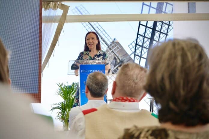 Rosa Melchor, alcaldesa de Alcázar de San Juan, y Ana Isabel Fernández Samper, directora general de Turismo, Comercio y Artesanía de Castilla-La Mancha, encabezaron una mesa redonda. La alcaldesa destacó el valor simbólico de los molinos y la riqueza gastronómica local, recordando a los presentes que muchas recetas mencionadas en «Don Quijote» aún se conservan y pueden ser degustadas con vinos de la región.