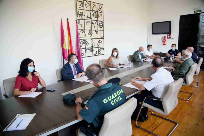 La alcaldesa de Toledo, Milagros Tolón, y el subdelegado del Gobierno de España en la provincia, Carlos Ángel Devia, han presidido este jueves a mediodía en la Sala de Gobierno del Ayuntamiento la convocatoria extraordinaria de la Junta de Seguridad Local con el fin de coordinar recursos y avanzar en la contención de la Covid-19. En la Junta de Seguridad Local se han dado cita, bajo las pertinentes medidas de seguridad y distancia ordenadas por las administraciones competentes, los representantes de las fuerzas y cuerpos de seguridad, de la dirección general de Protección Ciudadana del Gobierno regional, del Cuerpo Nacional de Policía, Guardia Civil, así como de Policía Local y Bomberos. También ha asistido el director general de Salud Pública de la Junta de Comunidades de Castilla-La Mancha, Juan José Camacho.