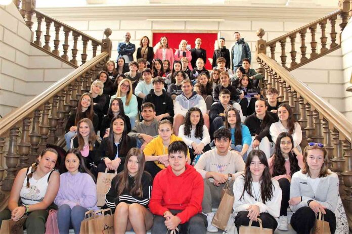 La alcaldesa de Alcázar de San Juan, Rosa Melchor, ha recibido en el ayuntamiento junto al concejal de Educación, Mariano Cuartero, a un grupo de veintidós estudiantes y tres profesores italianos que se encuentran estos días en la localidad gracias al programa de estudios Erasmus. En su visita, han estado acompañados de profesores y alumnos de 1º de Bachillerato del IES Miguel de Cervantes, con quienes comparten programa de estudios.