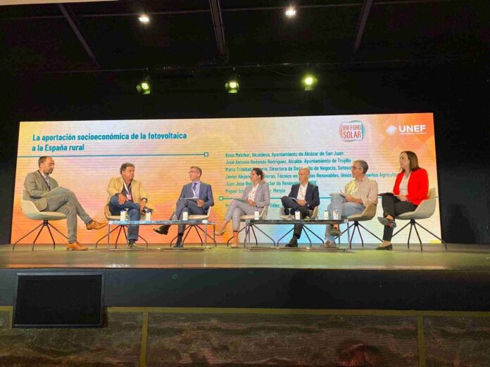La alcaldesa de Alcázar, Rosa Melchor, ha participado en Madrid en el VIII Foro Solar que organiza la UNEF (Unión Española Fotovoltaica). La alcaldesa formaba parte de la Mesa de debate “La aportación socioeconómica de la fotovoltaica a la España rural”, tema que se abordaba en esta jornada junto a otros como la percepción en la sociedad de la tecnología fotovoltaica o la presentación del estudio de impacto de las plantas fotovoltaicas en la biodiversidad, en una jornada que contaba con la intervención especial de la vicepresidenta y ministra para la Transición Ecológica y el Reto Demográfico, Teresa Rivera.