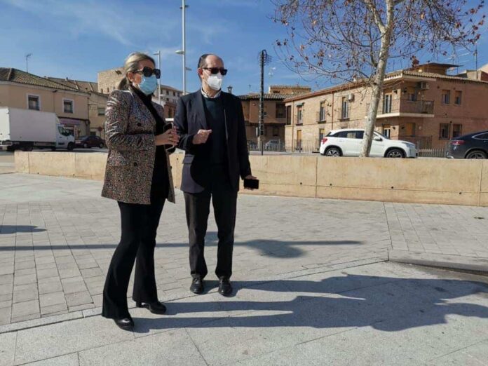 La alcaldesa de Toledo, Milagros Tolón, ha visitado este martes con Rafael Canogar el espacio donde quedará ubicada la escultura que, cedida por el artista toledano, el Ayuntamiento va a instalar en la plaza de Safont en homenaje a las víctimas de la COVID-19.