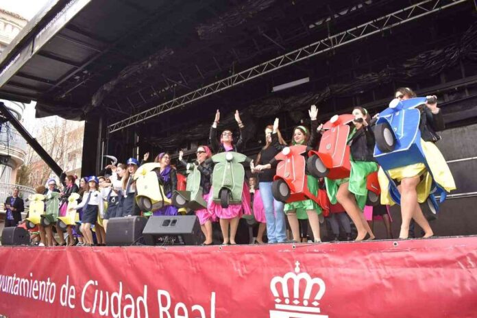 La Plaza Mayor del Ayuntamiento de Ciudad Real albergaba esta mañana el tradicional concurso local de Murgas y Comparsas. El jurado ha concedido el primer premio a la Asociación de Dulcineas y Damas de Ciudad Real, dotado con 500 euros más trofeo, por su recreación de motocicletas de los años sesenta ¡No hay quien nos pare! Seguidamente, y después de una votación ajustada por la gran calidad de los grupos presentados, se ha concedido el segundo premio a la Asociación Cultural Valquirias, dotado con 300 euros más trofeo con su recreación del “Resurgir del Ave Fénix”. Finalmente, el tercer premio ha recaído en la Asociación de Coros y Danzas de Ciudad Real Grupo Mazantini que han revivido la emoción de una montaña rusa. El acto ha tenido una gran concurrencia popular y ha contado con una amplia representación de la Corporación Municipal.