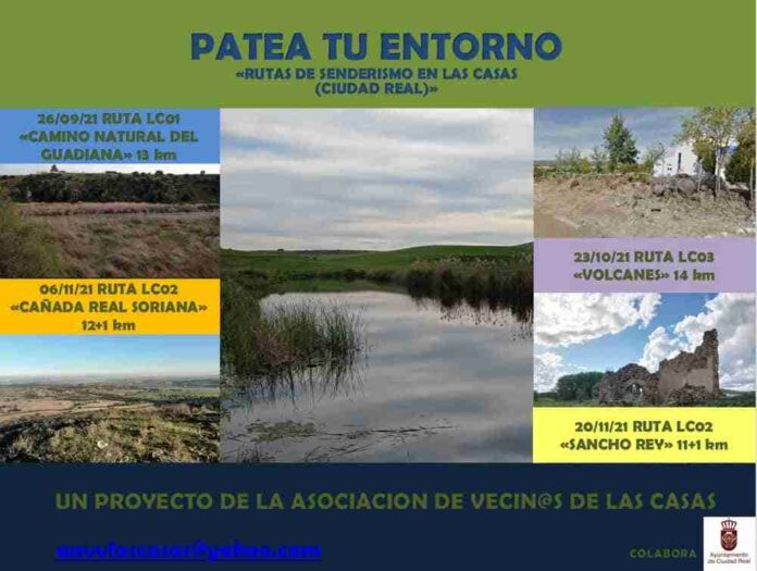Desde la Asociación de vecinos de Las Casas y con la colaboración de la Concejalía de Participación Ciudadana del Ayuntamiento de Ciudad Real, se ha presentado el proyecto “Patea tu entorno”, en el que se van a desarrollar cuatro rutas senderistas en las proximidades de la pedanía.
