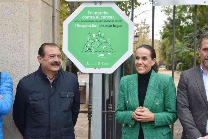 Esta mañana, coincidiendo con el Día Internacional del Cáncer de Pulmón se procedía a colocar un nuevo punto con una señal indicadora de “Espacios sin Humo” en la puerta del Parque de Gasset, fruto del acuerdo de colaboración entre la Asociación Española Contra el Cáncer y el Ayuntamiento de Ciudad Real a través del trabajo transversal de varias concejalías como Educación y Deportes; enmarcado dentro del Plan Municipal de Adicciones de Ciudad Real que pretende avanzar y dar respuestas a las necesidades y demandas existentes en relación con el fenómeno de las toxicomanías, la dependencia y los hábitos no saludables desde recursos cercanos a la ciudadanía. Al evento han asistido la alcaldesa de Ciudad Real, Eva María Masías, el presidente de la Junta Local de la Asociación, Ángel Pérez, el concejal de Deportes, Juventud e Infancia, Antonio Gallego, el concejal de Educación, Nacho Sánchez y una representación de la Corporación Municipal y de la asociación.