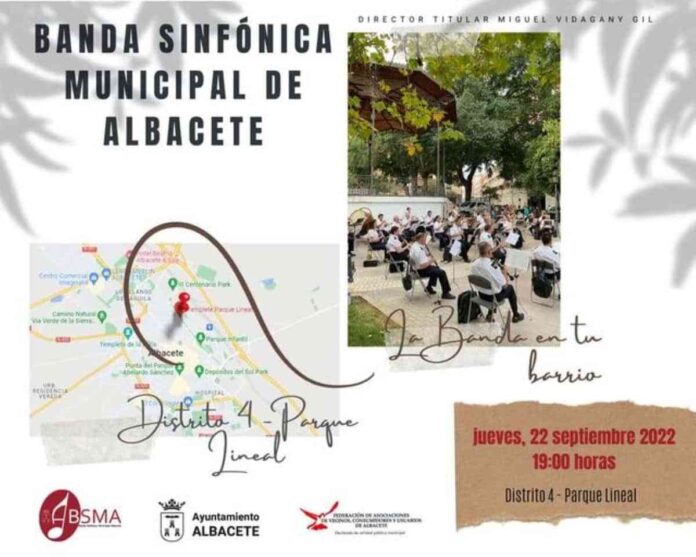 Amantes de la música podrán disfrutar mañana de la Banda Sinfónica Municipal de Albacete. Un nuevo concierto que forma parte del programa ‘La Banda en tu barrio’ para que todos puedan disfrutar de la misma en distintos barrios de Albacete.
