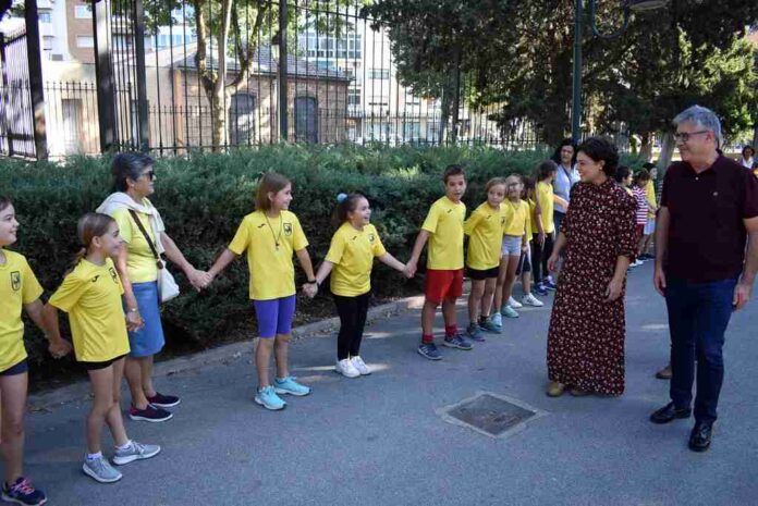 La comunidad educativa del CEIP Ferroviario, han abrazado simbólicamente esta mañana al Parque de Gasset. Se trata de una iniciativa que pretende agradecer todo lo que este parque ha aportado al trabajo educativo con el alumnado del centro.