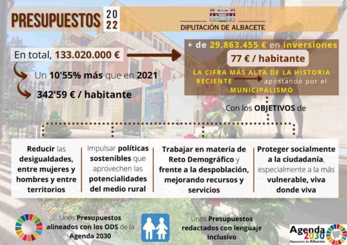 Por tanto, dirigidos en toda su esencia al cumplimiento de esos ODS de la Agenda 2030 a través de sus respectivas metas, los Presupuestos aprobados para 2022 atienden a la realidad demográfica y social de la provincia y tienen como objetivos: la dinamización de los municipios, el mantenimiento de los servicios públicos, la respuesta a la crisis sanitaria provocada por la COVID-19 y la generación de oportunidades en el territorio para afrontar con garantías la lucha contra la despoblación impulsando la recuperación y el sostenimiento del tejido económico.