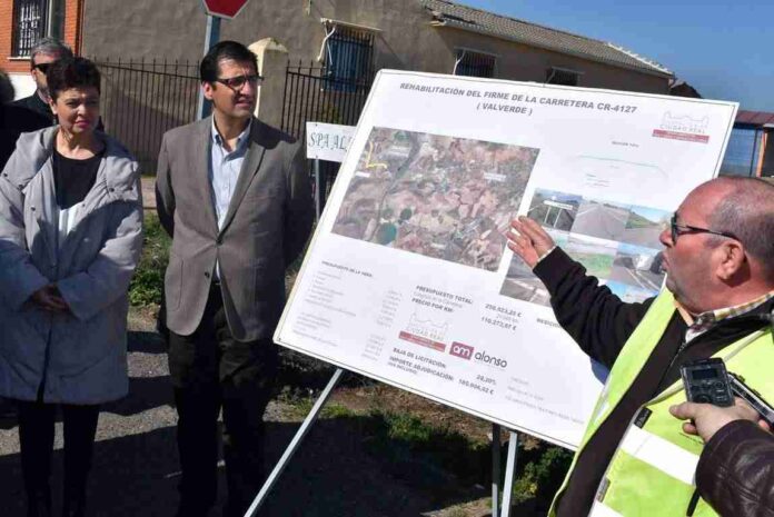 La alcaldesa de Ciudad Real, Pilar Zamora, y el presidente de la Diputación Provincial, José Manuel Caballero, han presentado esta mañana en Valverde las obras de rehabilitación del firme de la carretera CR-4127 que tendrán un presupuesto de 186.000 euros.