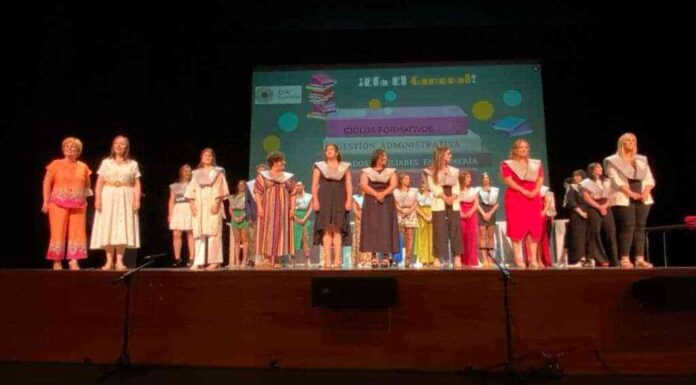 El acto celebrado era la clausura de final de curso. Esta promoción es la 2020/2022 explicaba la directora, que la calificaba de” promoción fantasma” porque hasta final de curso no hemos podido conocer sus rostros, lamentaba, porque hemos vivido con la mascarilla, a consecuencia de la pandemia. Es un día de alegría, afirmaba, en el que se graduaban alumnos del ciclo de cuidados de auxiliares de enfermería, de gestión administrativa, higiene bucodental y educación infantil.