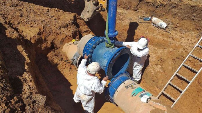 La avería consistía en la rotura de la Te metálica de la ventosa 25 (Ve25), en la que se ha producido un agujero por corrosión. Y la reparación, en la sustitución de esta Te por una nueva de fundición dúctil de los mismos diámetros, instalado con dos uniones de alta tolerancia de fundición, y una unión ARPOL.