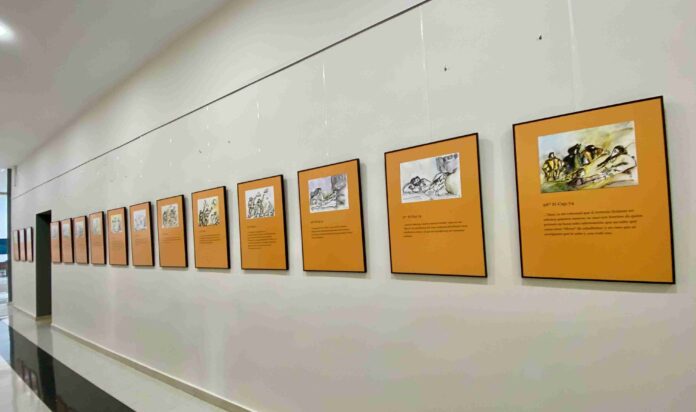 El hilo conductor de esos dibujos en “siete cartelas”, está basado en los comentarios de Francisco Rico que sitúan al espectador en la parte de la obra que describen las ilustraciones, indicando el número del dibujo, la parte de la novela y el número del capítulo correspondiente.