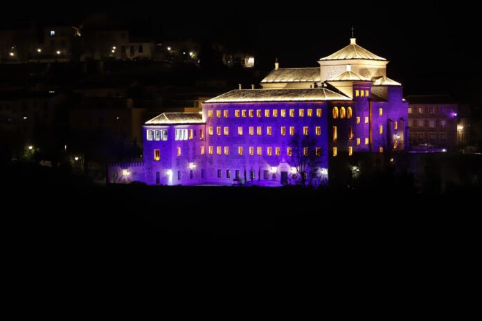 Las Cortes de Castilla-La Mancha han iluminado esta noche de morado la fachada de su sede, el antiguo Convento de San Gil en Toledo, como gesto de adhesión a la campaña de la ONU del 25 de noviembre como Día de la Eliminación de la Violencia contra las Mujeres.