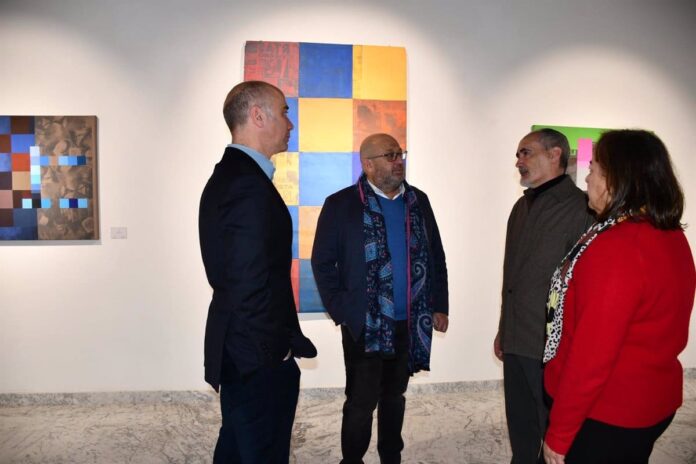 Lafuente llevó al diputado a su mundo geométrico, donde cada creación, aunque sea independiente, mantiene su propia identidad. “El contraste cromático es una herramienta fundamental que permite generar texturas mediante técnicas como la serigrafía o la cianotipia”, explicó el artista, resaltando que los resultados visuales pueden evocar la plasticidad de los mosaicos.