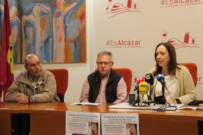 Esta mañana, la Hermandad de San Cristóbal ha presentado la XI edición del Concurso de Cuentos Escolares “El tráfico desde el ojo escolar”, en una rueda de prensa celebrada en la sala de comisiones del Ayuntamiento de Alcázar de San Juan, a la que ha asistido la alcaldesa Rosa Melchor para acompañar al presidente de la hermandad, Pedro Murat, así como al vicepresidente Jesús Molina.