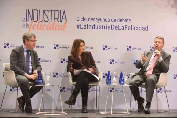 La tercera edición de «La Industria de la Felicidad», un ciclo de debates organizado cada mes por el Grupo Hotusa, tuvo lugar en las instalaciones del Eurostars Madrid Tower 5*. El foco del debate giró en torno al sector turístico y las incertidumbres económicas que enfrenta, a pesar del buen verano que acaba de pasar. Álvaro Nadal y Jordi Sevilla, exministros de Energía, Turismo y Agenda Digital, y Administraciones Públicas, respectivamente, fueron los protagonistas del evento, moderados por la periodista Pilar García.