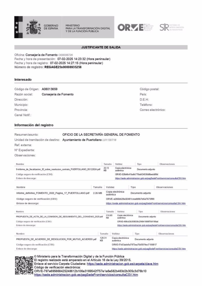 Asimismo, el comunicado de la Junta señala que el acta de la comisión de seguimiento, enviada por la Consejería de Fomento el 7 de febrero, incluía una propuesta de acuerdo para resolver el convenio de las obras en cuestión, lo que sugiere que el alcalde podría haber aceptado dicha propuesta y haberla dejado firmada en el momento de su recepción.