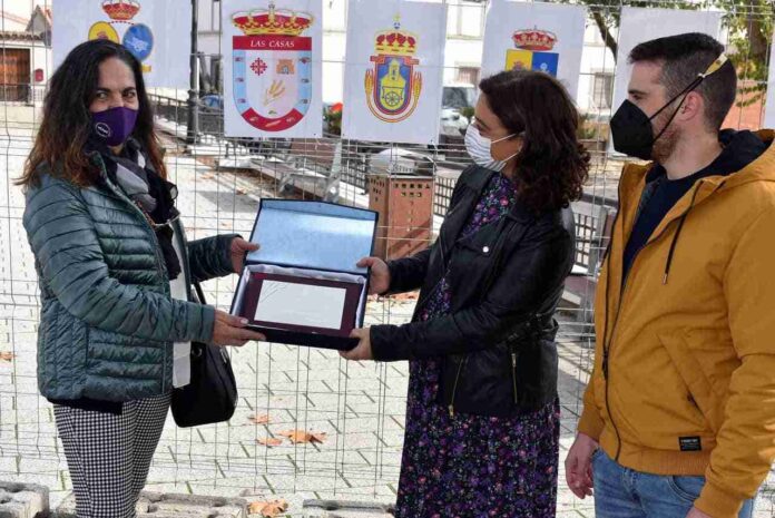 La pedanía de Las Casas ya cuenta con su emblema. La alcaldesa de Ciudad Real, Pilar Zamora, le ha entregado a la ganadora del concurso convocado por la alcaldía pedánea de Las Casas, María del Carmen Santos Romero, una placa de reconocimiento por su obra.