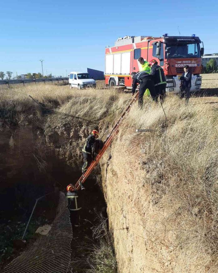 En la mañana de este sábado, 19 de noviembre, los agentes de la Policía Local de Argamasilla de Alba (Ciudad Real) y varios miembros del cuerpo de bomberos del Parque de Tomelloso, han rescatado a un perro del interior de un pozo de drenaje de la A43 cuyo vallado perimetral de protección se hallaba en mal estado.