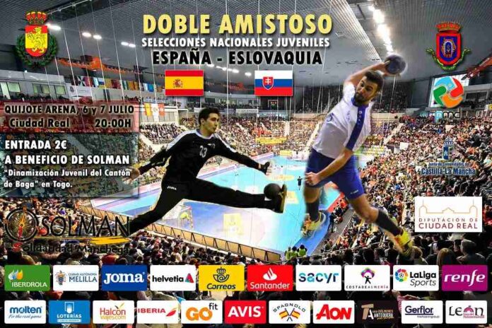La semana que viene saldrán a la venta las entradas para los dos partidos amistosos que la Selección Española de Balonmano juvenil disputará en el Pabellón Quijote Arena contra la selección Juvenil de Eslovaquia los días 6 y 7 de julio a las 20 horas. Las entradas tendrán un coste de 2 euros por partido, e irán destinados a un proyecto de la ONG SOLMAN en Togo.