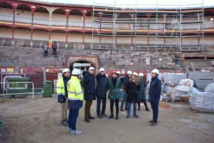 La alcaldesa de Ciudad Real, Eva María Masías, ha resaltado este viernes la importancia de las obras de rehabilitación de la plaza de toros, con fondos propios del Ayuntamiento, y que mejorará la ciudad y su historia más reciente, con una rehabilitación integral en la que no ha habido ningún elemento que no se haya tocado, ya sea los tendidos, que se ha levantado toda la piedra, los vomitorios, aseos, corrales o las tejas, entre otras muchas cosas.
