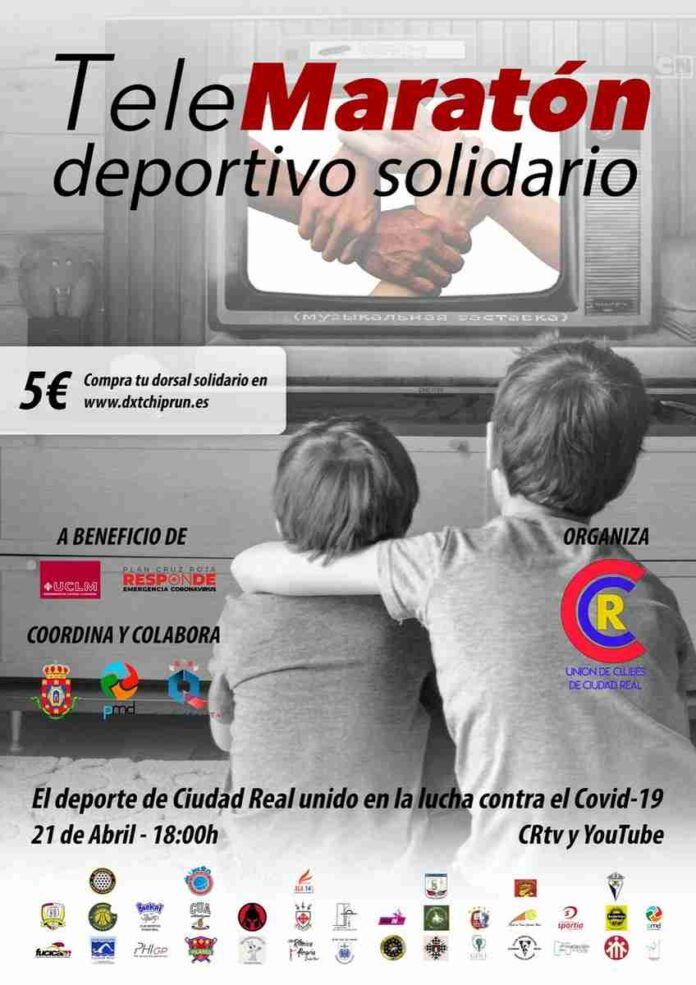 La recién constituida Unión de Clubes Deportivos de Ciudad Real en colaboración con el Patronato Municipal de Deportes del Ayuntamiento de Ciudad Real organizan para este martes, 21 de abril el Telemaratón Deportivo Solidario para recaudar fondos contra la COVID-19. Se trata de una iniciativa del deporte de la capital para obtener recursos con los que financiar los programas y actividades que se están realizando en Ciudad Real por parte de dos entidades: Cruz Roja y la Universidad de Castilla-La Mancha.