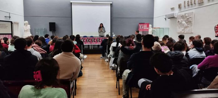 Tras la presentación, Beatriz de Silvaha mantenido una master class que se ha convertido en una charla coloquio con los alumnos y alumnas de la Escuela de Arte, que han participado de forma muy activa preguntando e interesándose por la trayectoria, inquietudes y proyectos de la cineasta.