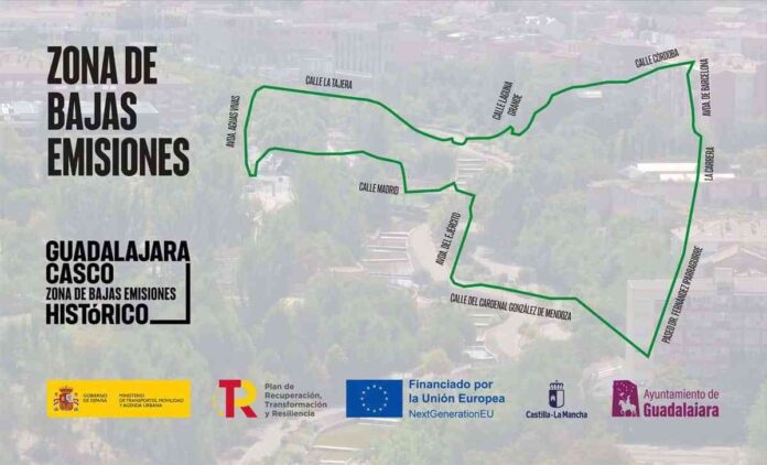 La Zona de Bajas Emisiones de Guadalajara comenzará a funcionar el 1 de enero de 2024, con una superficie de 718.119 metros cuadrados, en la que se incluye todo el casco histórico de la ciudad. A partir de ese momento comenzará un periodo de «información y formación» para que la aplicación sea gradual.