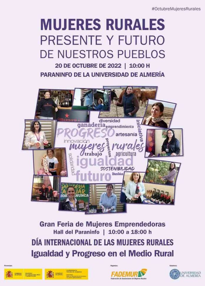Se espera a más de seiscientas mujeres procedentes de pueblos de todo el territorio quienes acudirán al Paraninfo de la Universidad de Almería el próximo jueves 20 de octubre. La Federación de Asociaciones de Mujeres Rurales, FADEMUR de Castilla-La Mancha, celebrará junto al resto de mujeres procedentes de toda España el Día Internacional de las Mujeres Rurales.