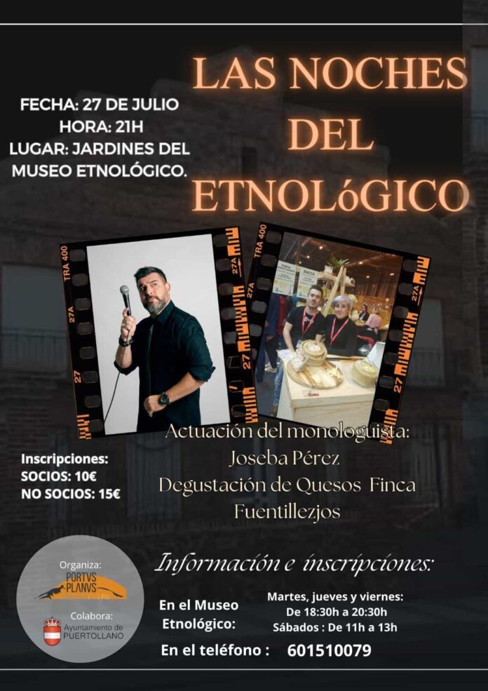 La velada comenzará a las 21 horas con la actuación del monologuista Joseba Pérez, seguido de una cata de quesos de la Finca Fuentillezjos, ubicada en Poblete. Para aquellos interesados en asistir, pueden obtener más información e inscribirse en el Museo Etnológico los martes, jueves y viernes de 18:30 a 20:30, así como los sábados de 11 a 13 horas. También pueden comunicarse al teléfono 601510079.