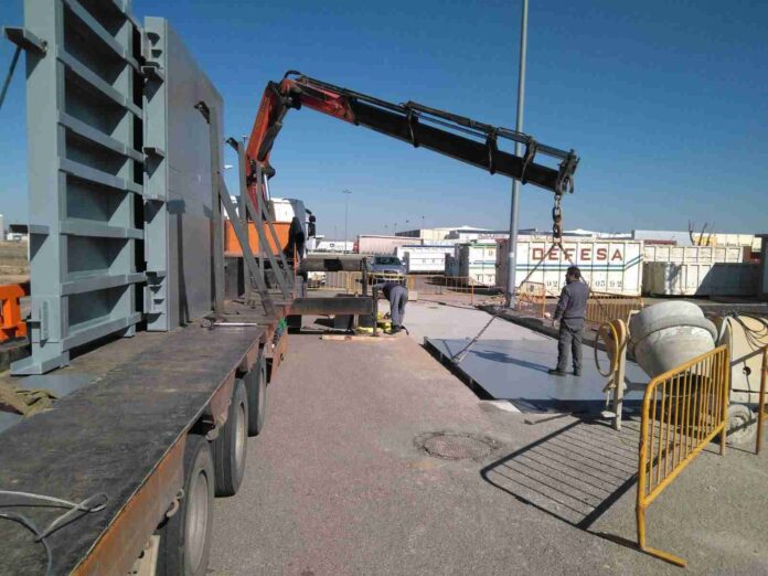 La plataforma de la báscula ya está instalada y ahora tan sólo falta realizar la correspondiente calibración y desarrollar la obra civil de la misma, es decir, acondicionar las rampas de acceso.