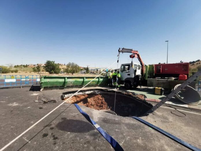Esta avería, que provocó el hundimiento del firme en el acceso a la urbanización de Valparaíso en la TO-21 el pasado 25 de agosto, se debió al taponamiento de una tubería de la red de saneamiento ubicada en un pozo de resalto de una profundidad de 11 metros.